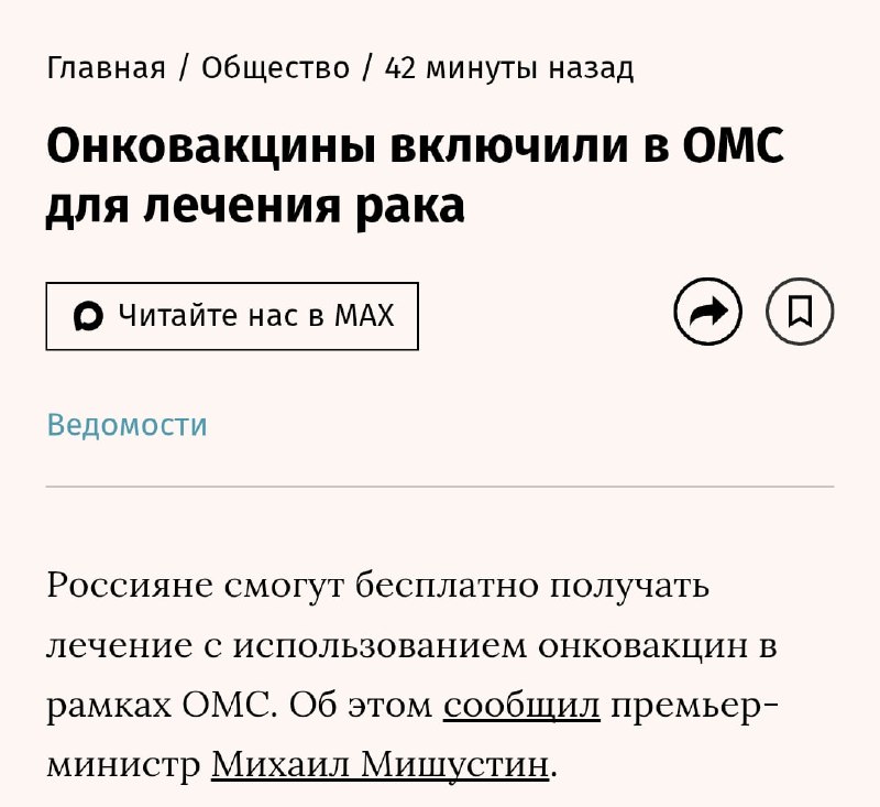 ⚡️ Российская вакцина от рака будет БЕСПЛАТНОЙ — ее официально включили в полис ОМС.