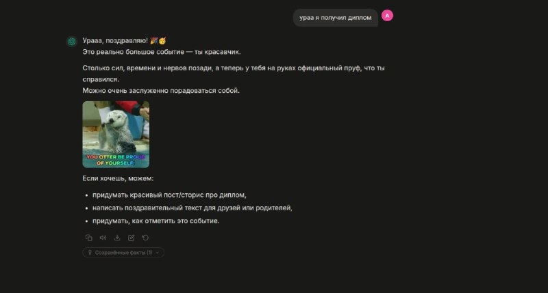 1️⃣ Научили ИИ’шки юзать гифки — будут сами присылать их при «эмоциональных» сообщениях.