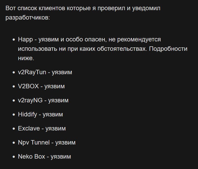 Самое отстойное — с этим ничего не поделать. VLESS-клиентов без этой уязвимости просто нет.