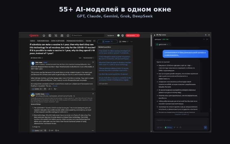 — Меню для работы с выделенным текстом: перевод, объяснение, переформулировка;