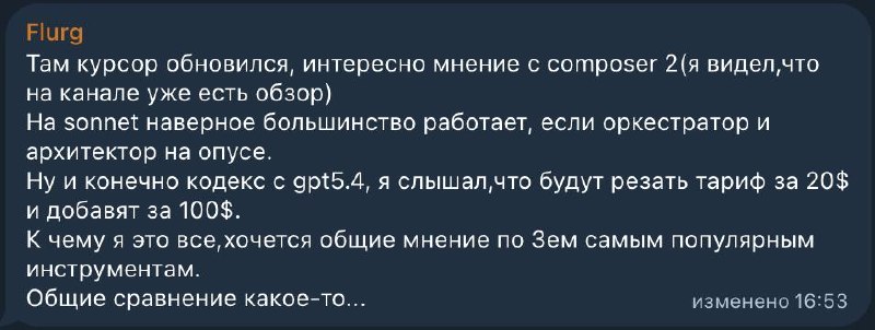 Значит Composer надо протестировать в Cursor (я его по-моему в OpenCode) тестил, уже плохо помню.