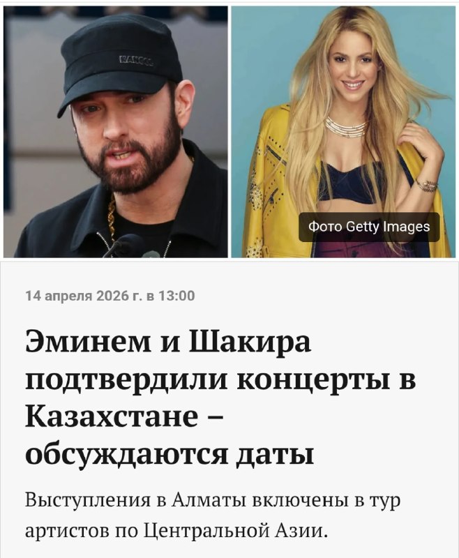 ⚡️ Эминем и Шакира выступят в Казахстане — официальное заявление казахстанских организаторов.