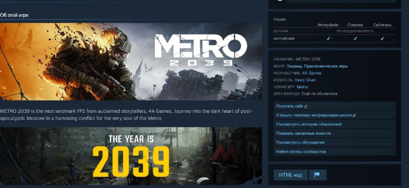 В новом Metro 2039 про Москву не будет русского языка.