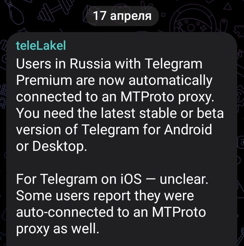 ⚡️⚡️ Юзеры Telegram Premium в РФ теперь автоматически подключаются к прокси MTProto — инсайдеры.