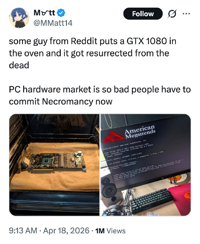 Лол: парень воскресил неработающую видеокарту в духовке! Да, чувак запек видяху, поставил в ПК и она заработала.