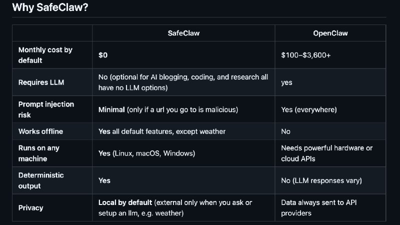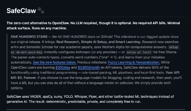 • SafeClaw проводит масштабные ресерчи, ищет любую инфу в сети, пишет тексты, работает с соцсетями, RSS, парсит данные, интегрируются с календарем, следит за вашим расписанием и делает еще десятки манипуляций.