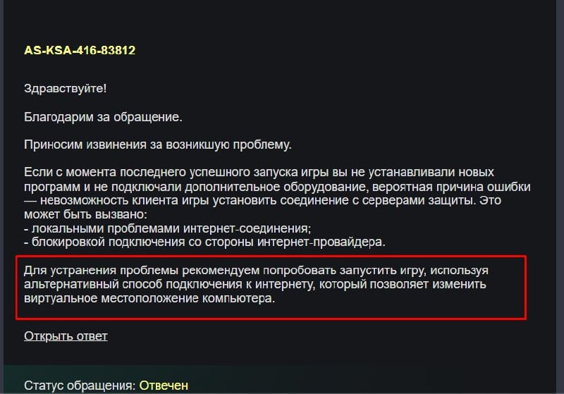 В поддержке бедолаге посоветовали использовать «альтернативный способ подключения к интернету». В сети сразу предположили, что дело в Denuvo, серверы которой заблочены в России.