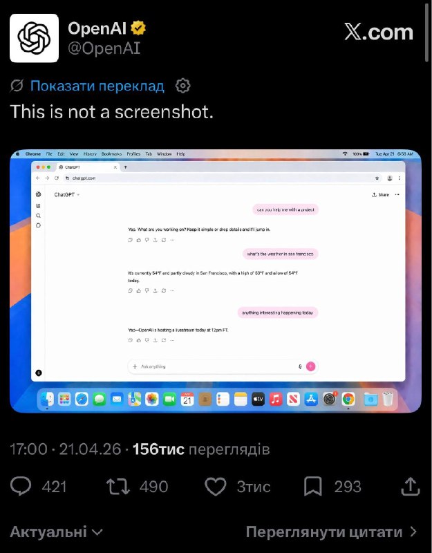 OpenAI сделали такой пост в Х, прикрепив сгенерированную картинку. Выход ожидается в 19:00 UTC (22:00 по Киеву/МСК), будет стрим.
