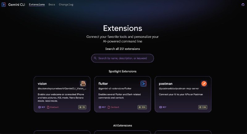 Расширения: Теперь пользователи могут открывать страницу расширений в своем браузере по умолчанию непосредственно из командной строки с помощью команды /extension explore которая просто откроет браузер по ссылке https://geminicli.com/extensions/ (@JayadityaGit ).