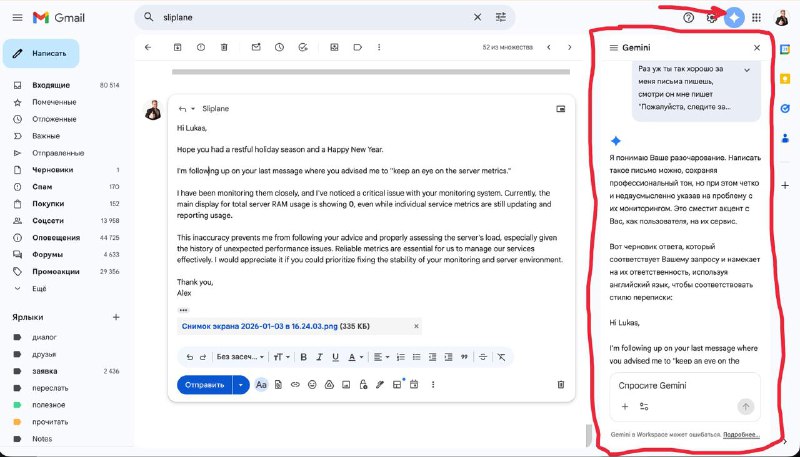 Gemini в Gmail — новый уровень в написании деловых писем на англ. языке!