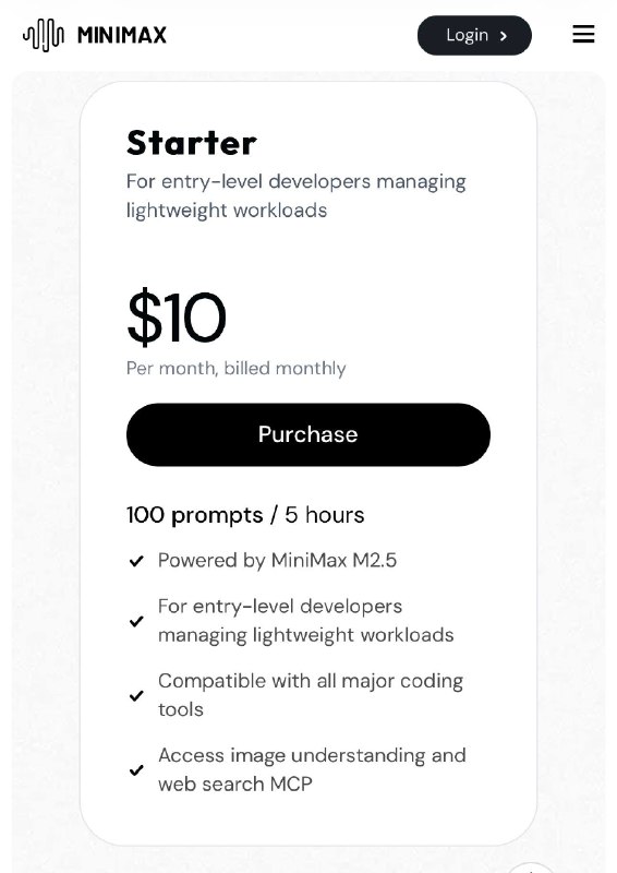 🟡 Starter — $10/мес, 100 промптов / 5 часов. Для входа и лёгких задач. Совместим со всеми популярными тулзами, есть image-understanding и web-search MCP.