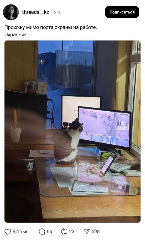 Кот-ОХРАННИК покоряет соцсети вместе со своим пушистым коллегой-хакером. Кошаки крутятся, как могут, и зарабатывают в столь сложное время.